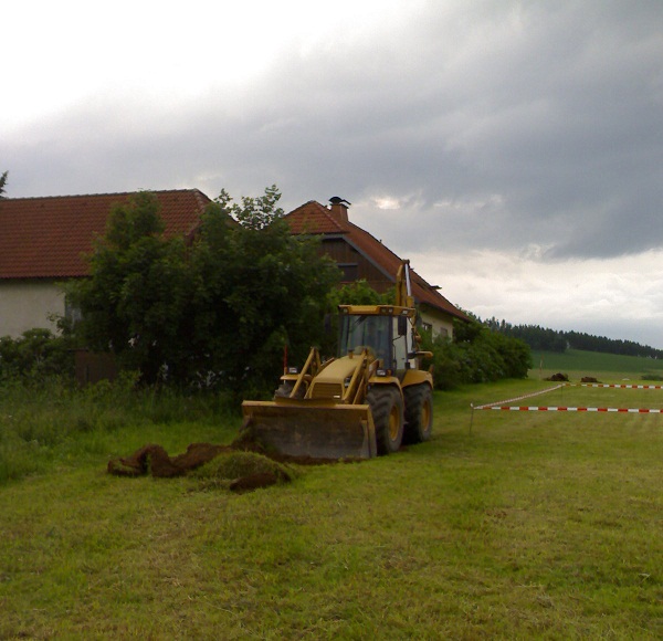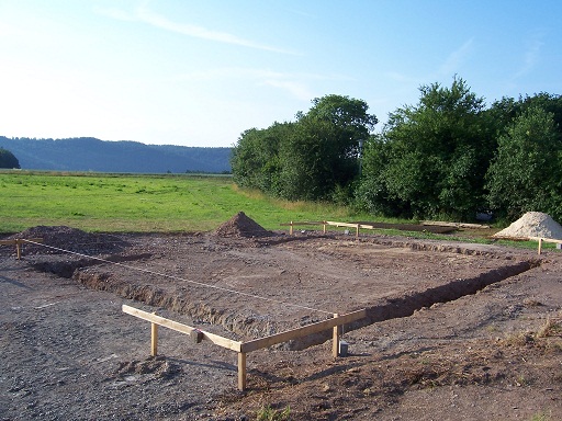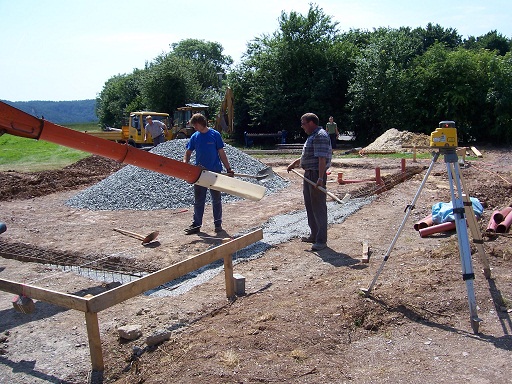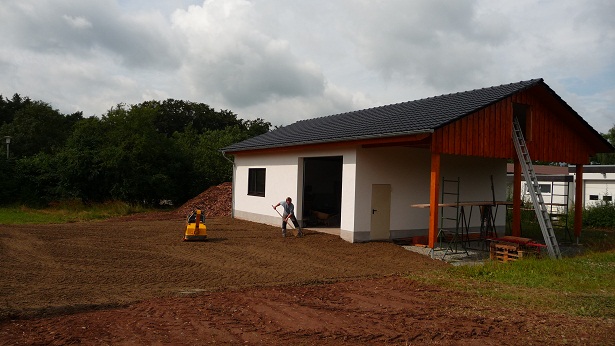 Endlich, nach vielen Verhandlungen und Vorbereitungen hat das Bauprojekt "Betriebsgebäude" begonnen. Am Anfang war wie vielerorts eine grüne Wiese.